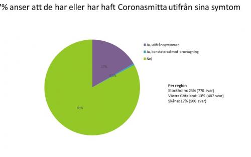 Undersökningen visar att redan under första veckan uppgav närmare en femtedel att de tror att de är eller har varit smittade av covid-19.